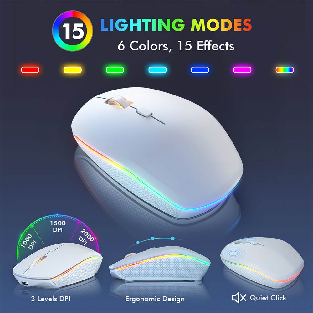 Wagpak Wireless Keyboard 7 Color Backlit Wrist Rest Rechargeable 112 Keys Quiet Keyboard White