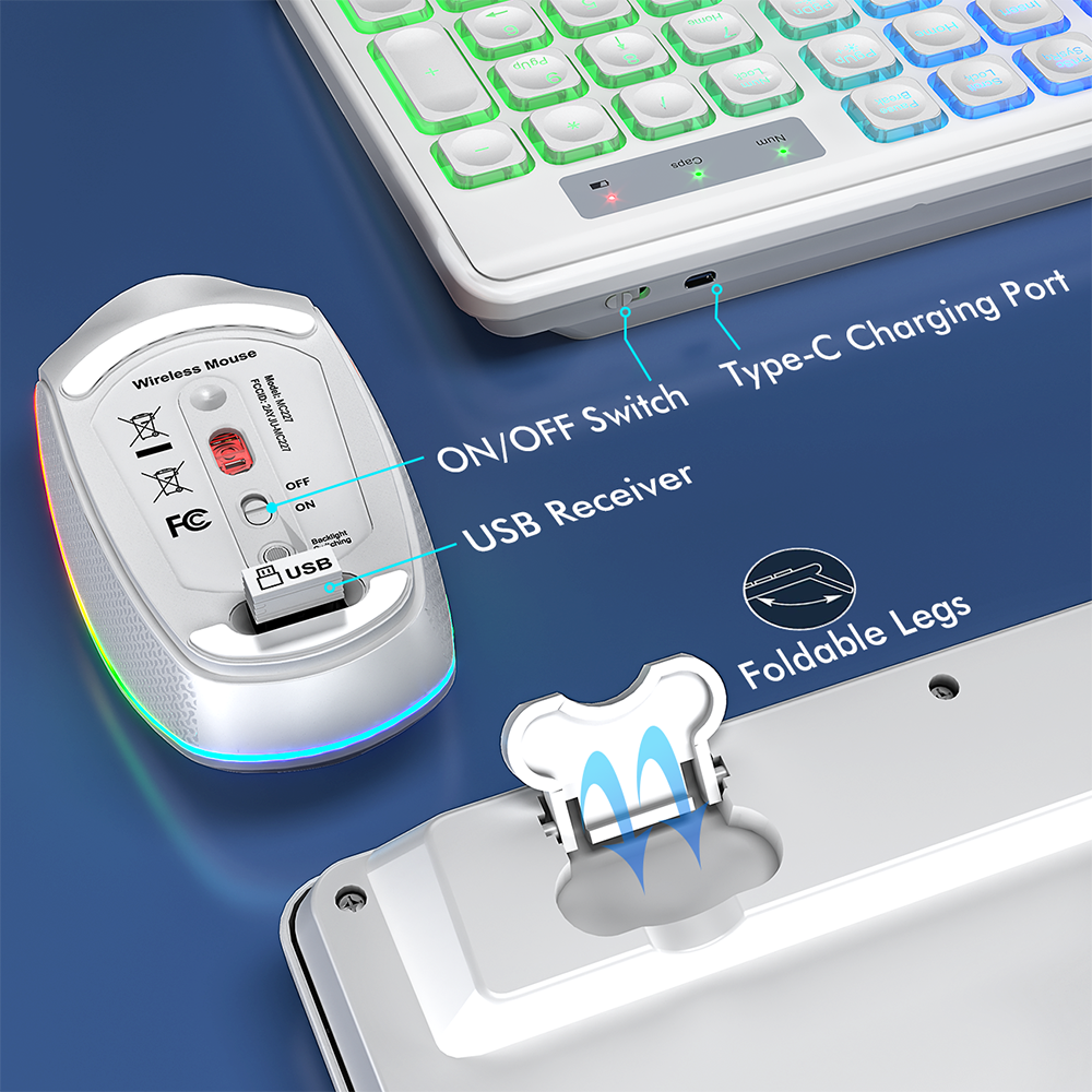 - 🔋EXTENSIVE BATTERY DURATION - Both the keyboard and mouse are rechargeable, conveniently charged via the included USB C cable. The intelligent auto-sleep function and on/off switches contribute to significant power conservation. Leave for 30 mins, the keyboard goes to sleep, leave for 90s, the mouse will sleep.
