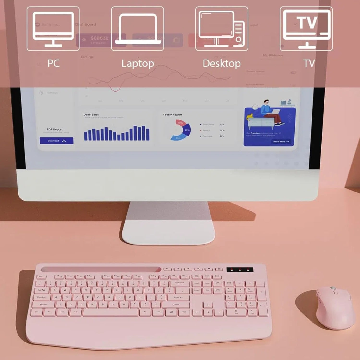 Wagpak Wireless Keyboard and Mouse Combo Wrist Rest Ergonomic Phone Holder Silent for Computer,Laptop-Light Pink