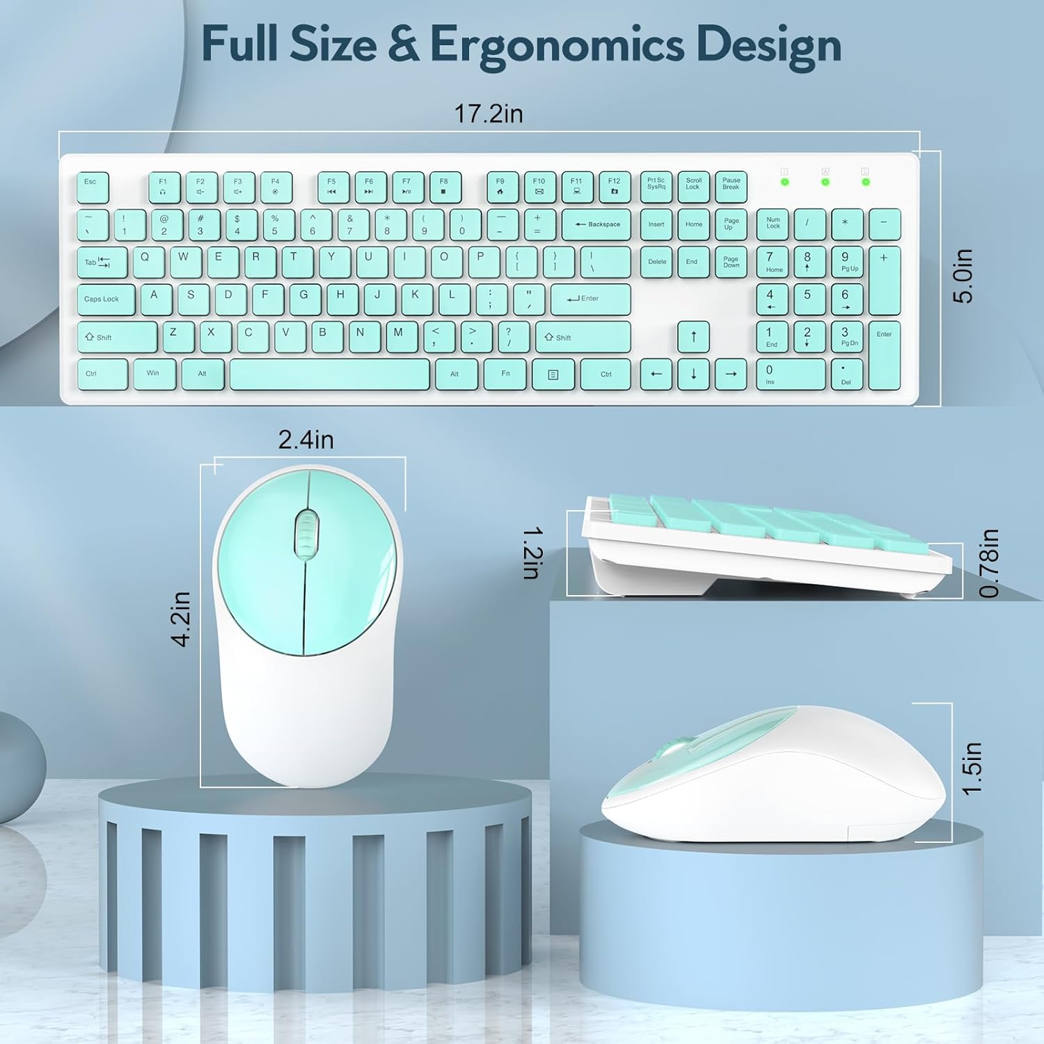 Wireless Keyboard and Mouse, Silent 2.4GHz Cordless Combo-Green-Wagpak